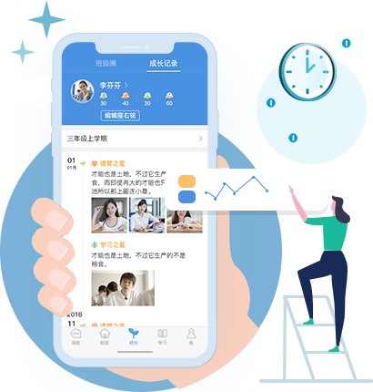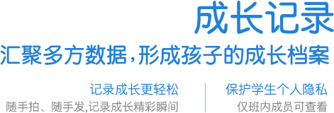 同时汇聚活动广场、一起悦读、习惯养成、学生点评等用户数据,丰富学生成长记录内容,形成孩子的成长档案